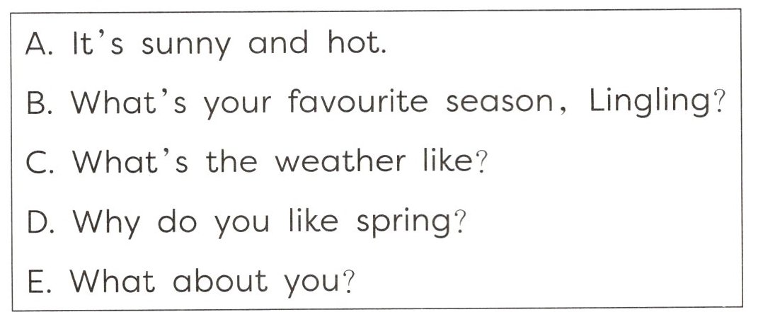 Lingling: I like summer best. 3.______ I can eat ice cream. 4.______