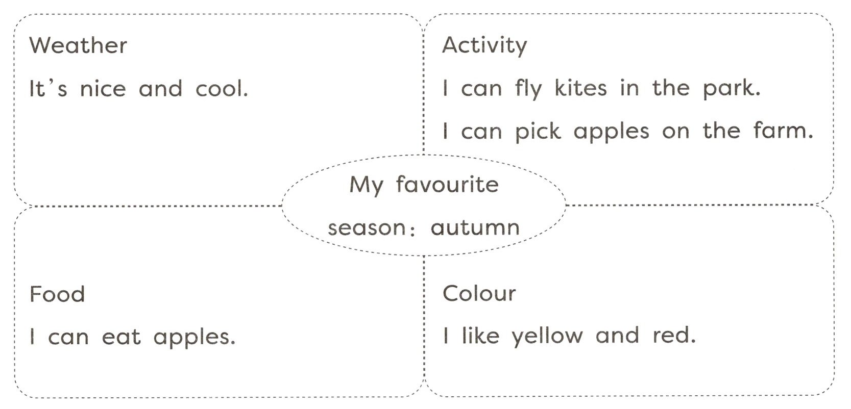 1. autumn 2. fly kites in the park 3. Because she can pick apples and eat them. 4. 略