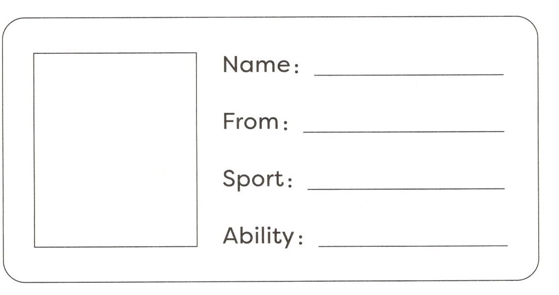 Ⅴ. Search, write and say. (你喜欢哪一位运动员呢? 请你搜索他(她)的信息,填写人物名片,并尝试进行介绍吧。)