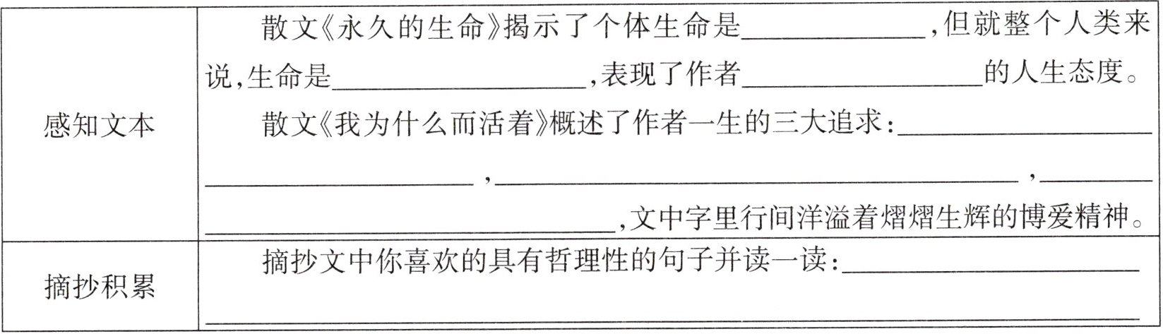 |感知文本|散文《永久的生命》揭示了个体生命是卑微柔弱的,但就整个人类来说,生命是不朽的,表现了作者积极乐观的人生态度。|