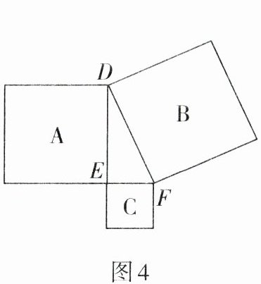 2. 如图4,以直角三角形DEF的三边为边向外作正方形A,B,C,若正方形B的面积为100,正方形C的面积为36,则图中正方形A的面积是