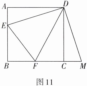6. 如图11,已知正方形ABCD的边长为3,E,F分别是AB,BC边上的点,且∠EDF= 45°,将△DAE绕点D按逆时针方向旋转90°得到△DCM.