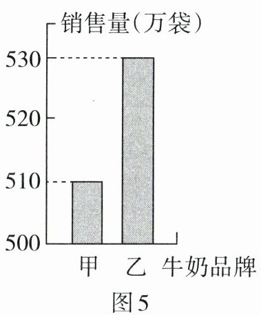 2. 如图5所示是一则报纸上广告绘制的统计图,并称“乙品牌牛奶每天销售量是甲品牌牛奶每天销售量的3倍”.你认为这则广告信息