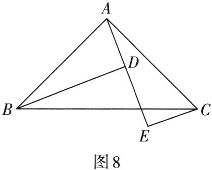 2. 如图8,A,D,E三点在同一条直线上,且$△BAD\cong △ACE$.