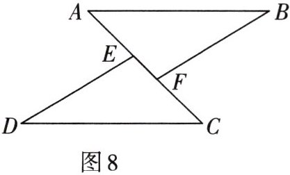 1. 如图8,点E,F在AC上,AB//CD,AB= CD,AE= CF.