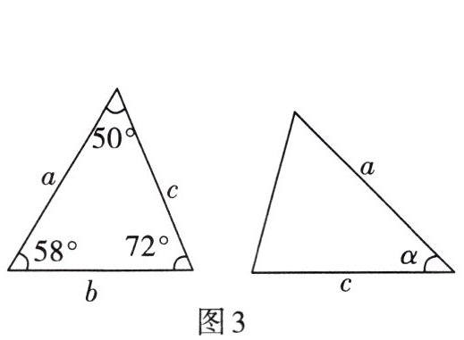 3. 已知图3中的两个三角形全等,则∠α的度数是(