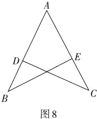 3. 如图8,点$D在AB$上,点$E在AC$上,$AB = AC$,$\angle B = \angle C$.