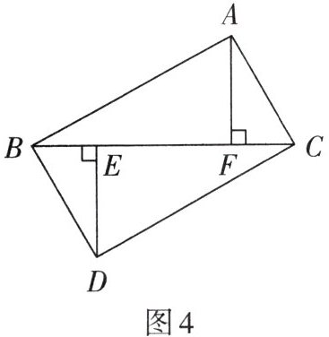 1. 如图4所示,$\triangle ABC\cong\triangle DCB$,$AF\perp BC于点F$,$DE\perp BC于点E$.若$BC = 18\mathrm{cm}$,且$\triangle ABC的面积为108\mathrm{cm}^2$,则$DE = $______