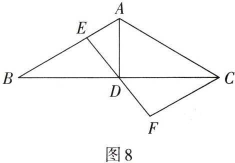2. 如图8,在$\triangle ABC$中,$AD是BC$边上的中线,$E是AB$边上一点,过点$C作CF// AB交ED的延长线于点F$.
