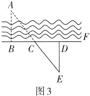 5. 要测量河两岸相对的两点$A$,$B$的距离,先在$AB的垂线BF上取两点C$,$D$,使$CD = BC$,再定出$BF的垂线DE$,使$A$,$C$,$E$在一条直线上,可以证明$\triangle EDC\cong\triangle ABC$,得到$ED = AB$,因此测得$ED的长就是AB$的长(如图3),判定$\triangle EDC\cong\triangle ABC$的理由是(