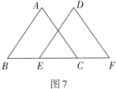 4. 如图7,$B$,$E$,$C$,$F$在同一直线上,$AB// DE$,$AB = DE$,$BE = CF$,$AC = 6$,则$DF = $