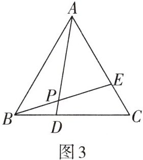 3. 如图3,已知等边三角形ABC中,BD= CE,AD与BE交于点P,则∠APE的度数是