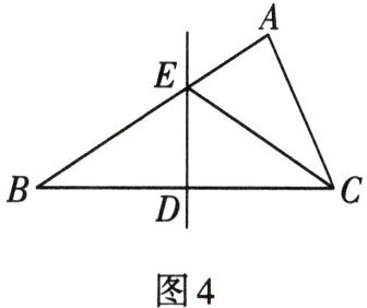2. 如图4,在△ABC中,BC边上的垂直平分线DE交BC于点D,交AB于点E. 若△ACE的周长为21,AB= 13,则线段AC的长为