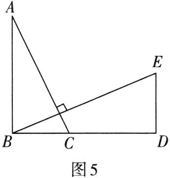 1. 如图5,在Rt△ABC中,∠ABC= 90°,点D在BC的延长线上,且BD= AB,过点B作BE⊥AC,与BD的垂线DE交于点E.