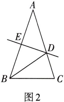 2. 如图2,在△ABC中,AB= AC,∠A= 36°,AB的中垂线DE交AC于D,交AB于E,下述结论中错误的是(