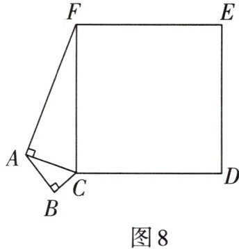1. 如图8,∠B = ∠FAC = 90°,BC = 3 cm,AB = 4 cm,AF = 12 cm. 求正方形CDEF的面积.