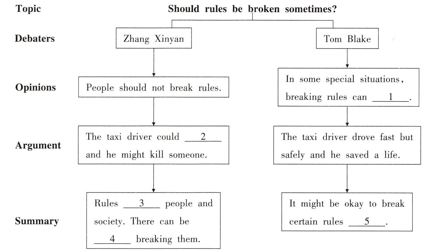 Tom: In my opinion, of course, we should not break rules. But in some very special situations, breaking rules can save lives. Just like this taxi driver.