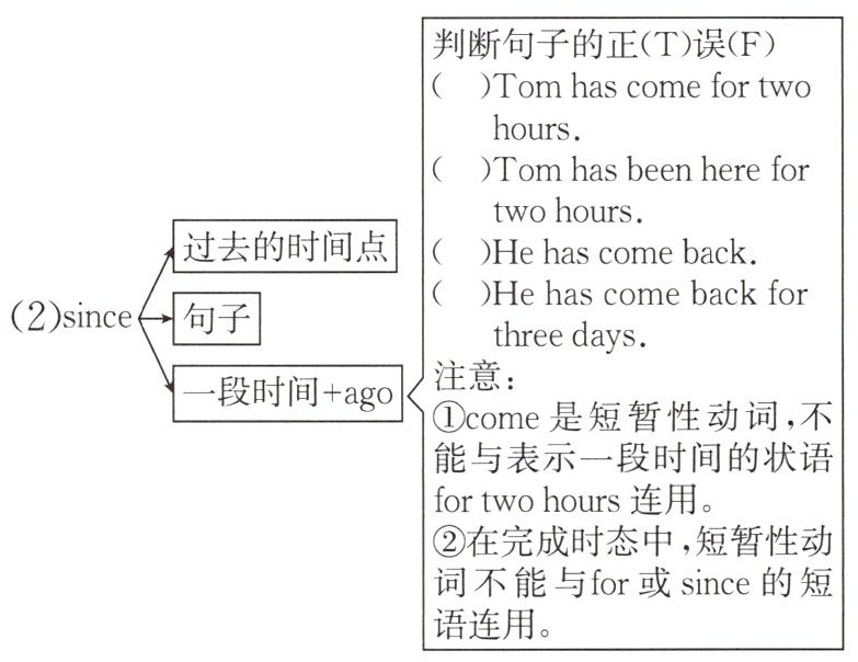 2. 归纳 for、since 在现在完成时中的使用规律。