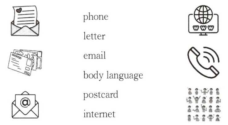 1. 将英文和对应的图片连线,并思考人与人之间的联系方式。