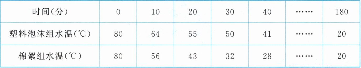 |塑料泡沫组水温(℃)|80|64|55|50|41|……|20|