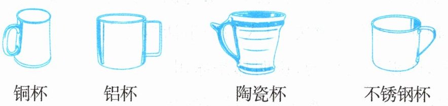 (1)在四个杯子中,同时倒入同样多的相同温度的热水,然后用手摸一摸各个杯子的外壳,感觉最烫的是( ),温度最低的是( )。