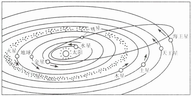 地球是人类唯一赖以生存的家园。读地球在太阳系中的位置示意图,完成下列各题。