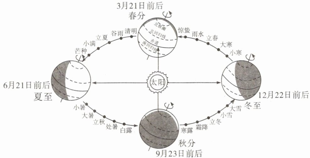 跟踪训练1 杭州第19届亚洲运动会始于秋分(2023年9月23日),历时16天圆满闭幕。读我国二十四节气示意图,完成下列各题。