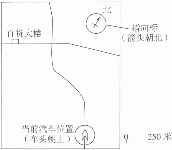 2. 若汽车从图中当前位置行驶到百货大楼的图上距离为 5 厘米,则实地距离为( )