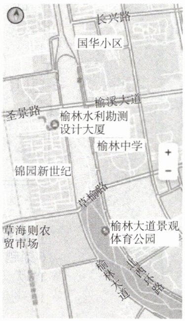 科技改变我们的生活,读陕西省榆林市某地的数字地图截屏,完成 3~4 题。