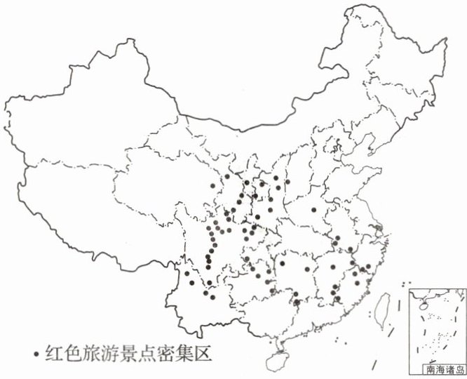 。下图是我国部分红色旅游景点密集区的空间分布图。据此完成 1~2 题。