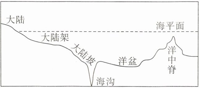 与陆地表面一样,海洋底部也是高低起伏、形态多样。读海底地形剖面示意图,完成 1~2 题。