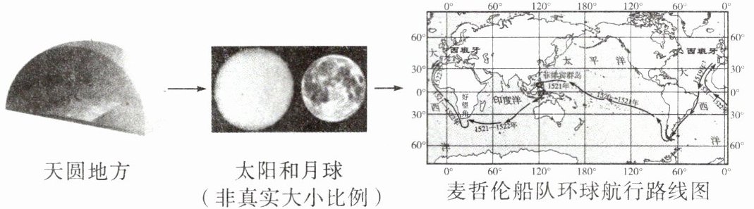 (2)从我国古代“天圆地方”的说法,到人们观测太阳和月球的形状,再到麦哲伦船队完成环球航行,人类对地球形状的认识过程,依次经历了( )