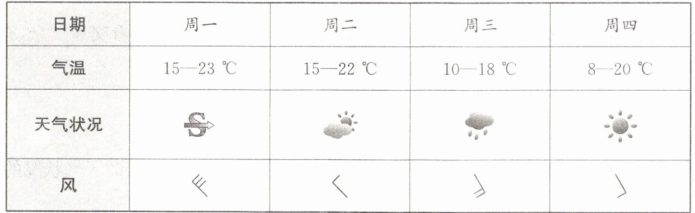 某学校计划举行郊游活动,同学们查询了近期天气状况如下表所示。下列说法正确的是( )