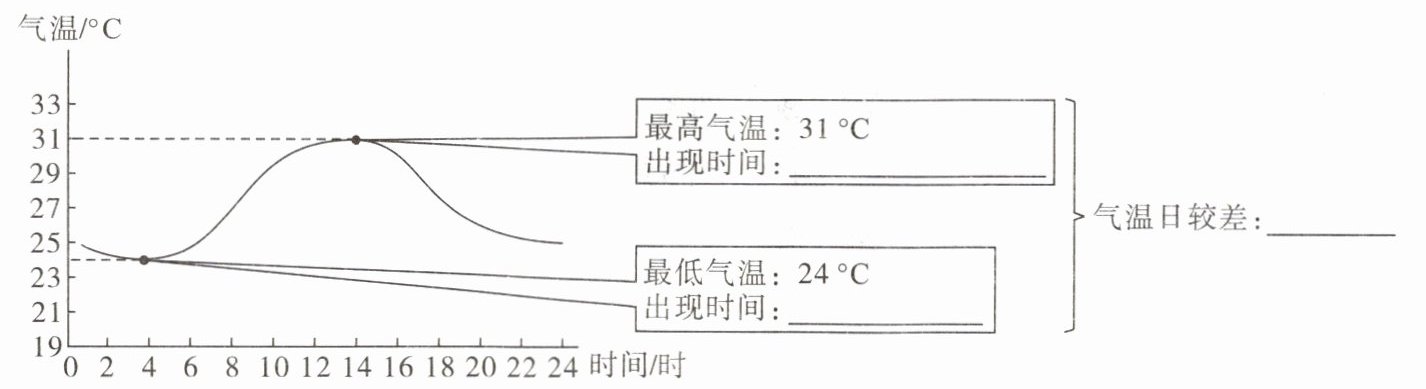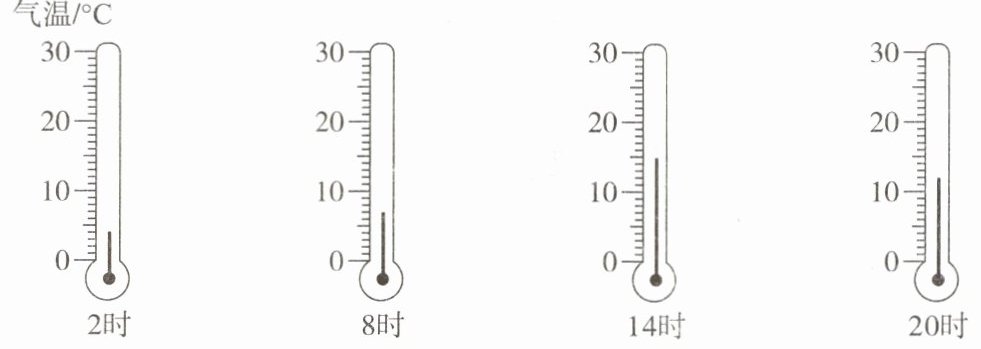 (2)观测求值:读一天中4次气温观测记录图,计算日平均气温。
