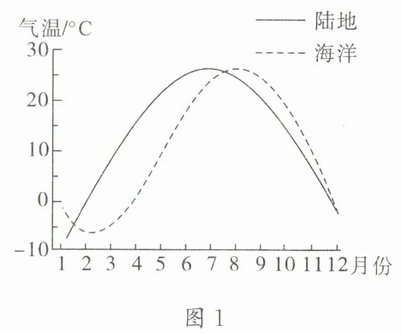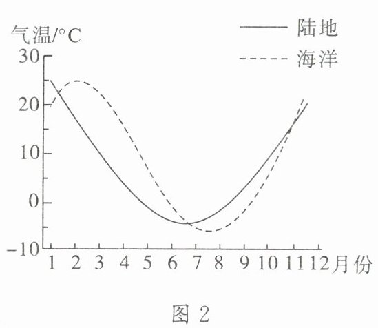 ①在北半球气温年变化图(图1)和南半球气温年变化图(图2)中分别圈一圈最高气温和最低气温。