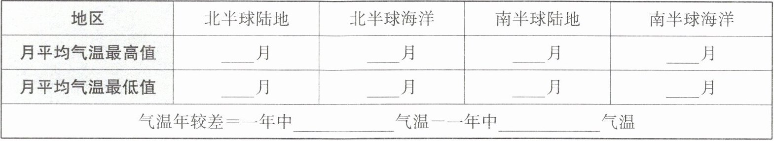 | 气温年较差= 一年中____气温-一年中____气温 | | | | |