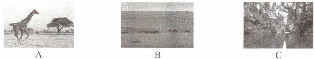 (3)柯本在划分气候类型的过程中,也会参照当地的主要植被类型。下列三幅景观图中,能够反映甲气候特征的是____。