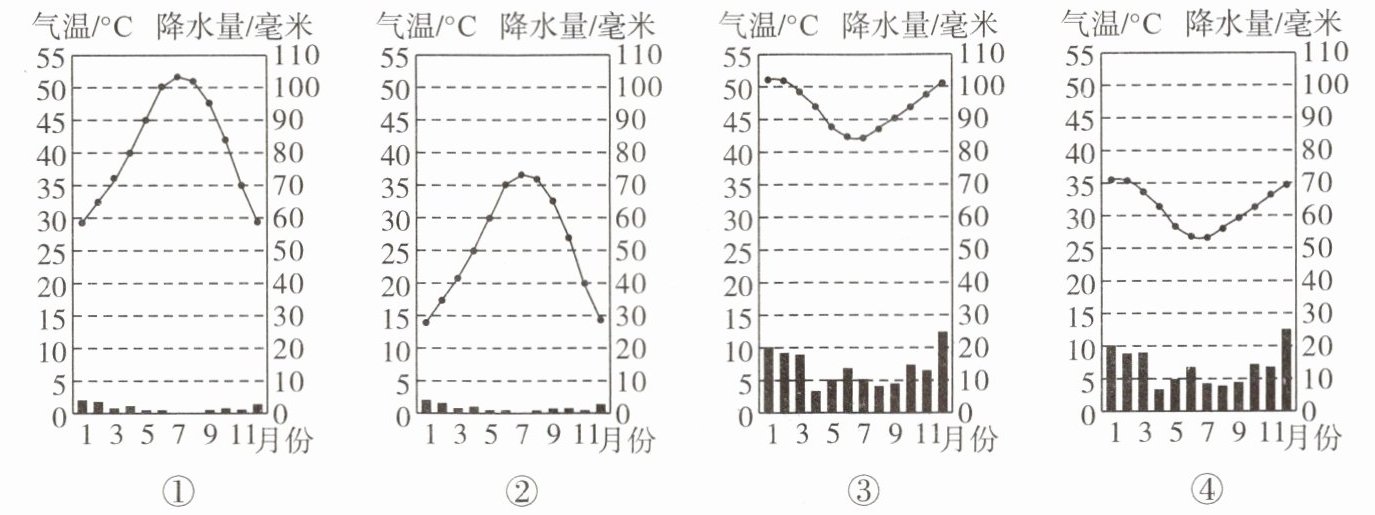 (1)图中表示该小镇多年平均各月气温和降水量的是( )