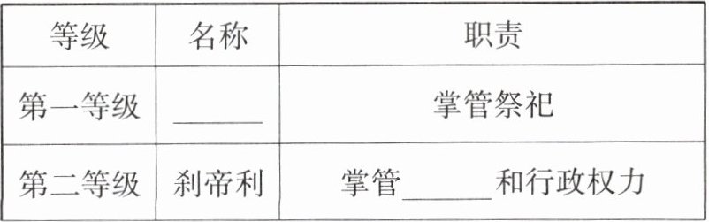 |第一等级|______|掌管祭祀|