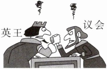1. 下面漫画是《17世纪英王和议会的角力》,关于“英王和议会的角力”,下列说法错误的是( )