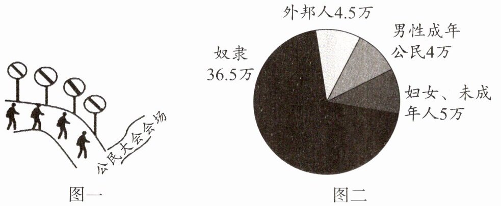 2. 你赞同材料二中“政权是在全体公民手中”这个说法吗?结合图一、图二和所学知识阐明理由。