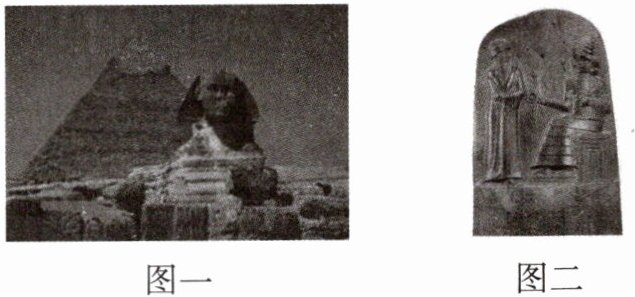 (1)写出图一、图二的遗址或文物分别与哪一文明古国有关。