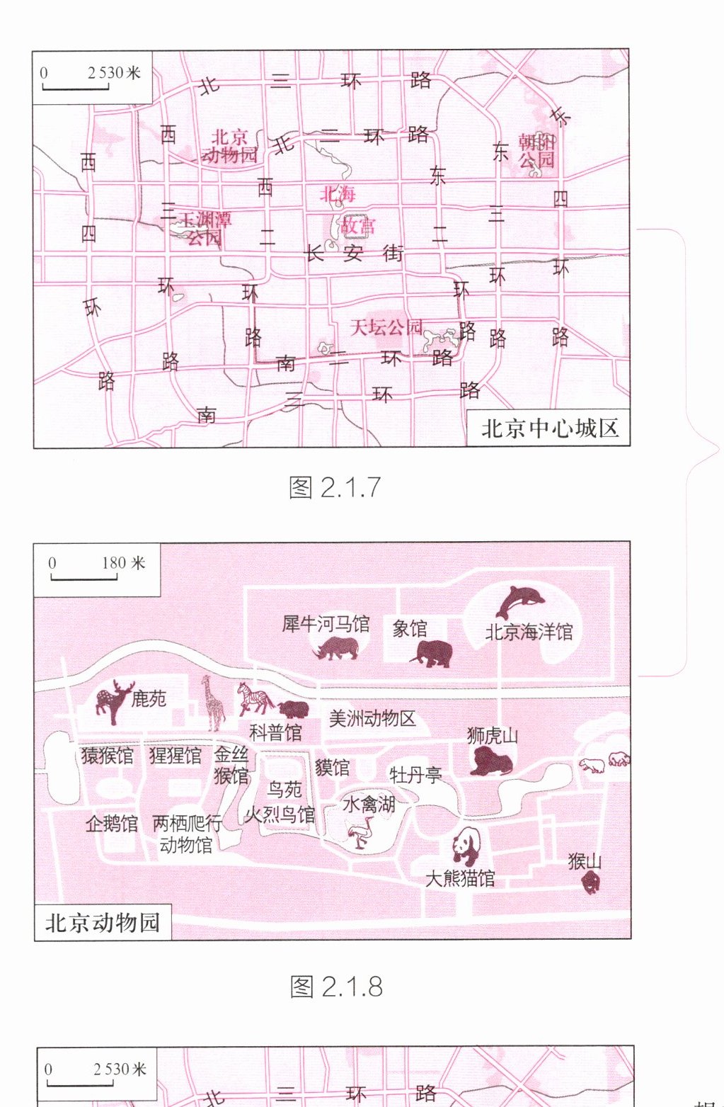 (4) 周末,住在天坛公园附近的孙军想去北京动物园游玩,图 2.1.9 是他查到的从天坛公园前往北京动物园的骑行路线。根据图中的比例尺,估算这条路线的骑行距离。