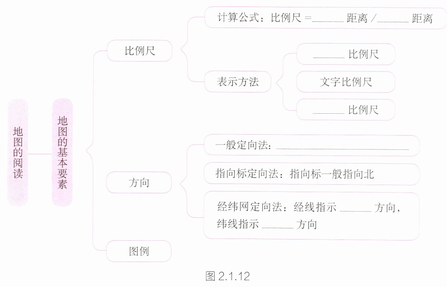 由上至下:图上 实地 数字 线段 上北下南,左西右东 南北 东西