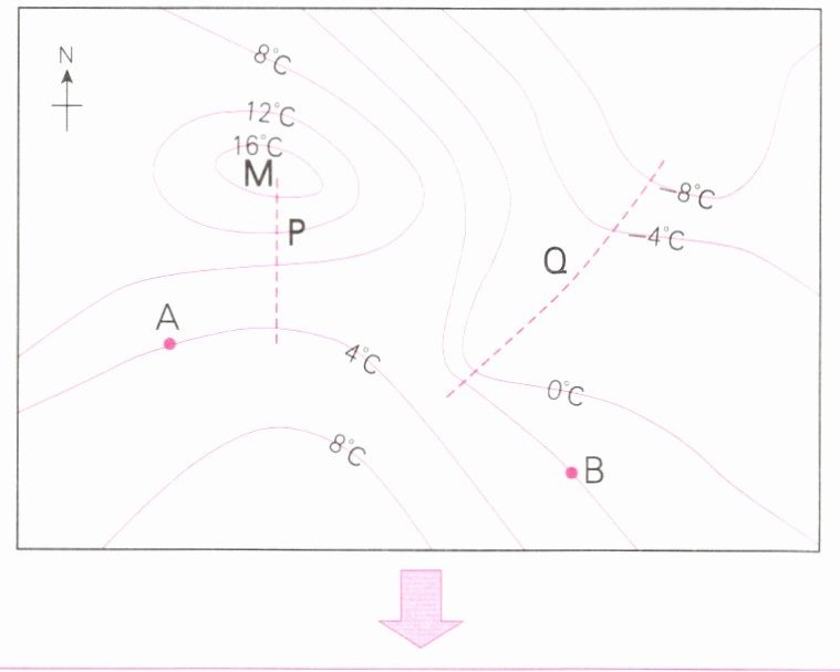 (1) A 点的气温为____℃,B 点为____℃。P、Q 两条线上相比,气温变化较大的是____。