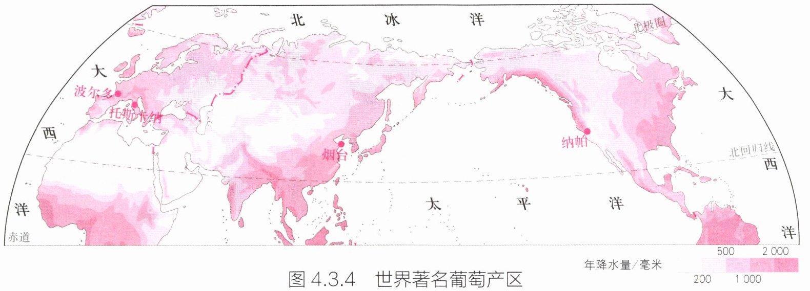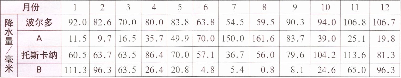 (4) 从降水的角度分析,法国波尔多地区有利于葡萄生长的条件是______。