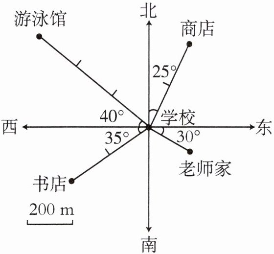 $m$。(4) 游泳馆在学校的