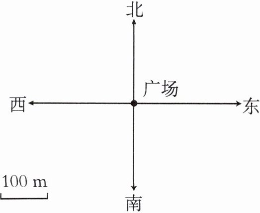 (4) 少年宫在广场的南偏西$45^{\circ}$方向$100$ $m$处。