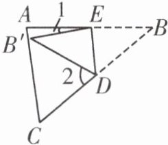 如图,将$\triangle ABC沿着DE$翻折,使点$B与点B'$重合. 若$\angle 1+\angle 2= 80^{\circ}$,则$\angle B$的度数为(
