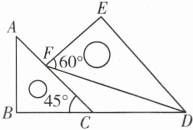 2. 将一副三角尺按照如图所示的方式摆放,点$B$,$C$,$D$共线. 当$\angle CDF= 18^{\circ}$时,求$\angle AFE$的度数.